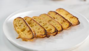 - Place the grated butter, baker’s flour and salt into a bowl.