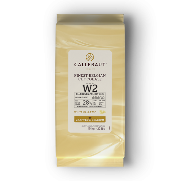 The iconic Callebaut W2 white chocolate is one of Callebaut’s original recipes that has grown into the preferred chocolate for chefs. Boasting a delightful taste with pronounced creamy, caramelly and vanilla notes, W2 can be paired with a wide range of ingredients and flavours.