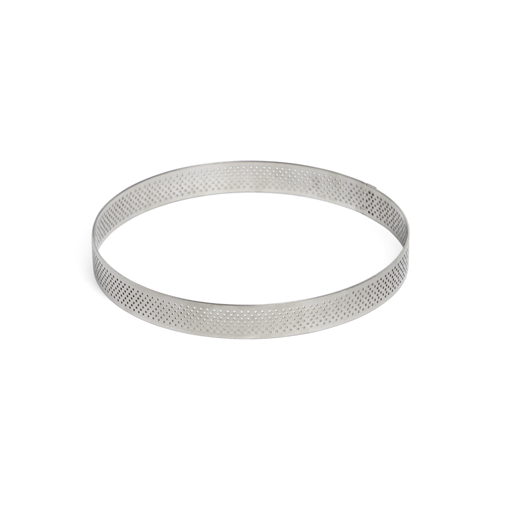 Perforated stainless steel rings are the key to perfect tarts. The micro perforated stainless steel frames bands help shortcrust pastry to hang onto the frame, avoiding the sides collapsing during baking and they also ensure perfect browning.
