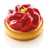 Kit Tarte Ring Fleur Ø 80 mm by Silikomart Professional is includes two elements: six perforated rings 80 mm in diameter, and a silicone mould made up 6 cavities of Ø 74 h 35 mm each to make a mousse or a cream to lay over the shortcrust pastry.