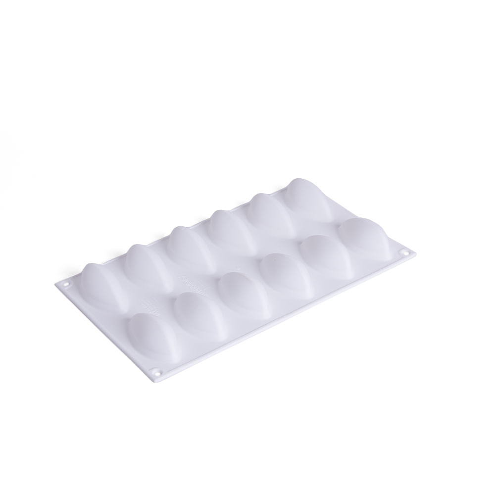 An elegant shape perfect to create 3D sweet or savoury quenelle. This mould is conceived and made with maximum care combining beauty and handiness. The new shape is provided with a special and innovative border in the upper part which gives a particular round shape to the base of pastries.