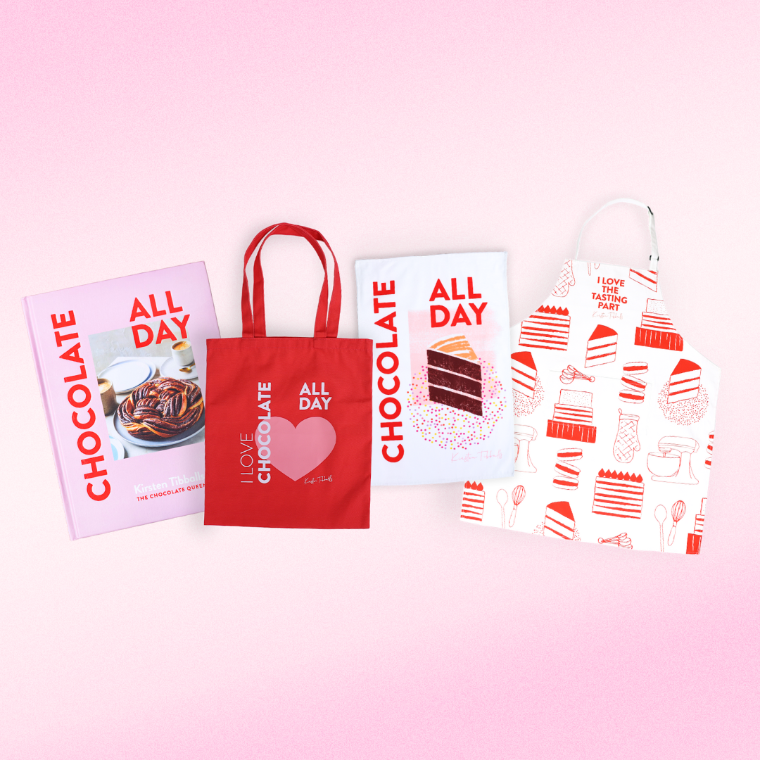 Not only do you get a copy of Kirsten’s newest mouth-watering cookbook, you also get a whole bunch of exclusively designed merch to ensure an Insta-worthy bake, every time!