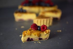 Kirsten’s twist on the classic creme brulee is the ultimate crowd-pleaser. Think: raspberry and blueberry compote nestled beneath smooth baked custard, all encased in a crisp pate foncer pastry shell. Topped off with that signature caramelised sugar crack and fresh berries, it’s as satisfying to smash as it is to eat.