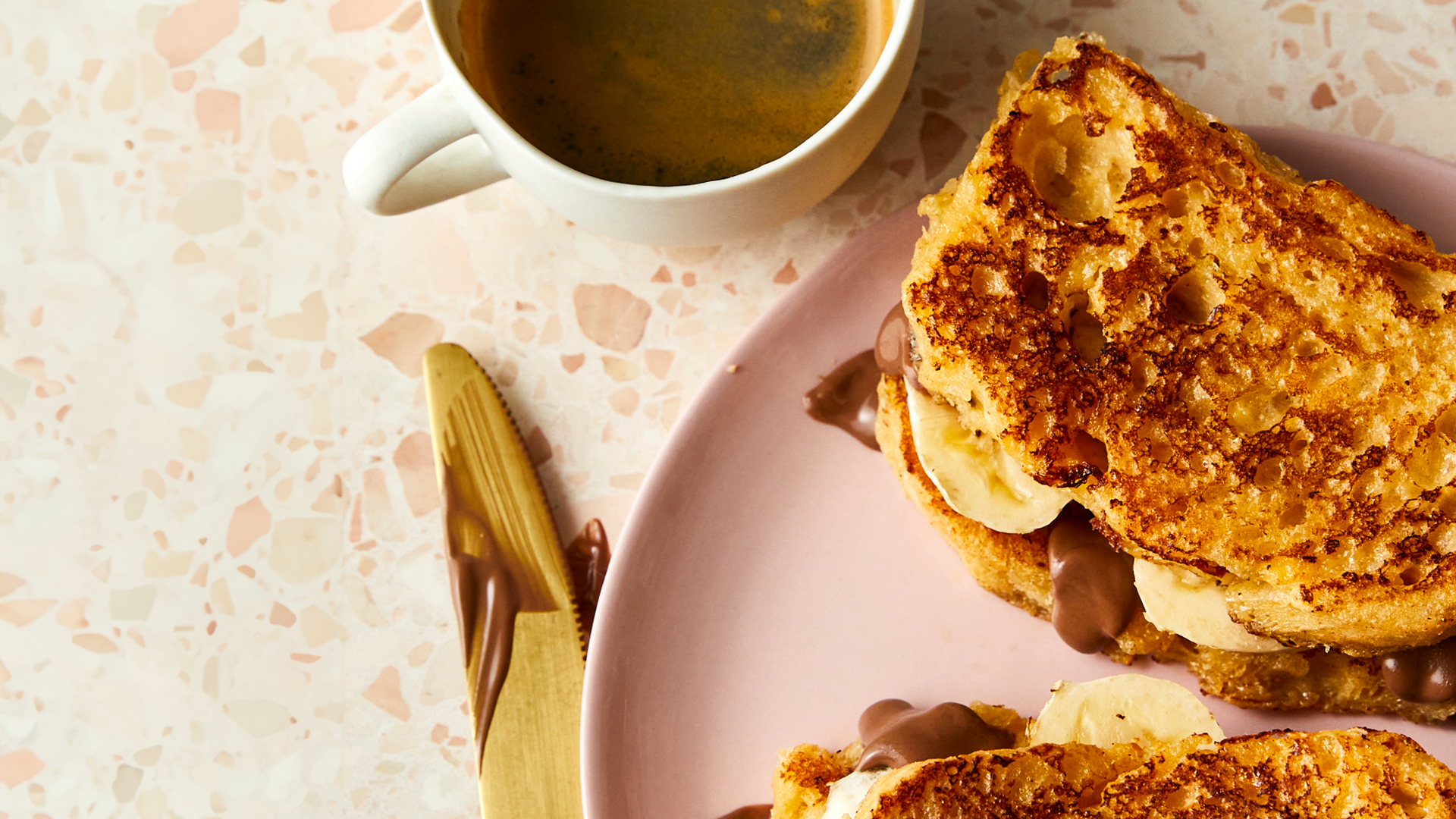 Melted and oh-so gooey milk chocolate and fresh banana slices are sandwiched between two sweetened slices of crisp French toast to create this irresistible toastie. It's easy to make and even easier to devour.