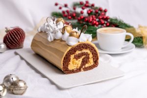 It doesn’t end there! This beauty boasts a striking painted marble finish and is adorned with juicy plum slices, white chocolate curls and a touch of gold leaf glam.